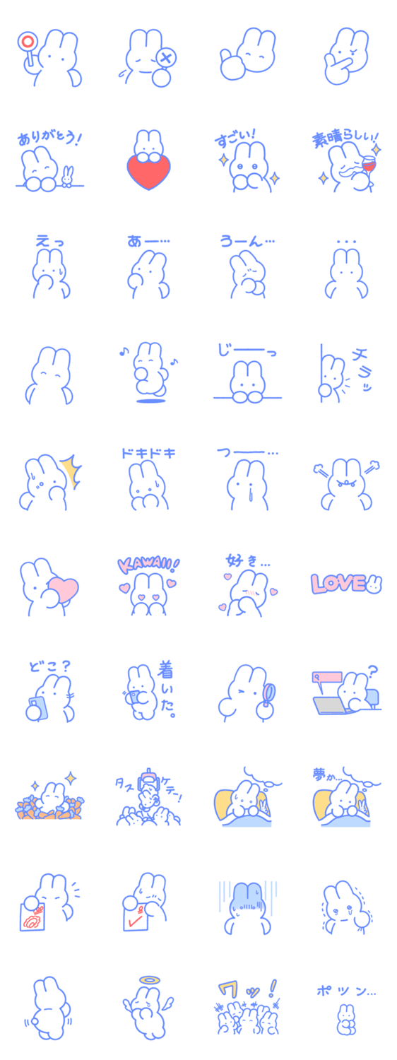 siroiusagichanの使いやすいスタンプです。今回はリアクションに使えるスタンプが多めです。使いづらいスタンプもあります。