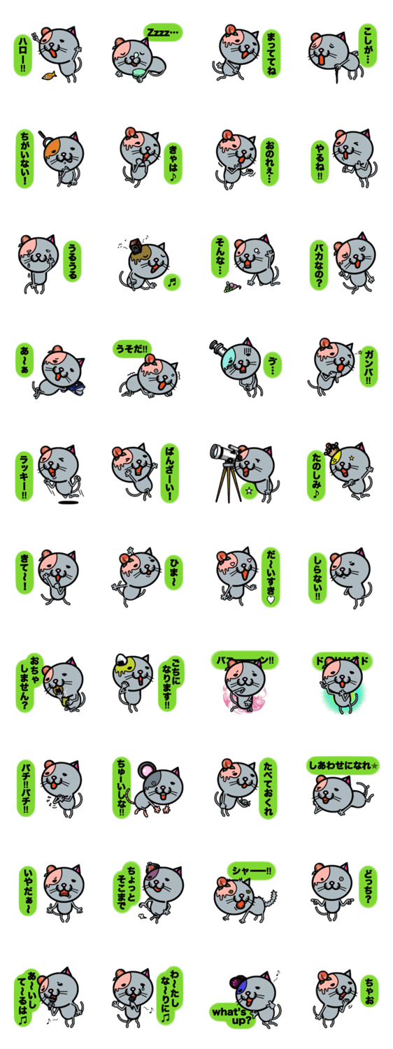 白ネコのあいうえお・・・ってるスタンプ