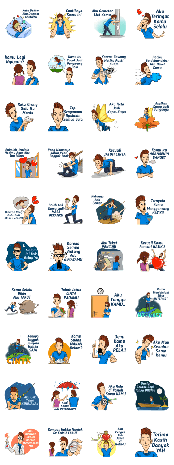 | スタンプ説明 | Hi! My name is Ganteng. Are you single? No problem, try these sticker to get a girlfriend soon. |