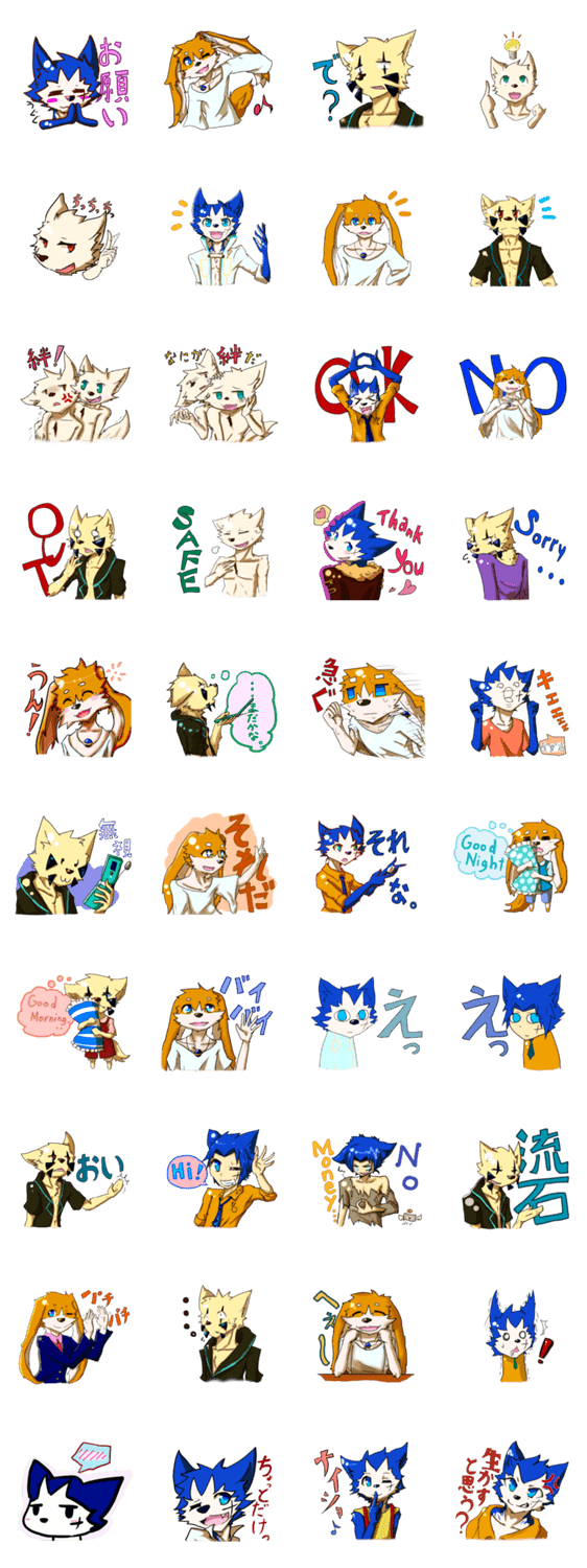 よぞちっそより生まれた、元気なケモノと青い子の人型たちの「ゆる~い」スタンプができました。友達とやりとりする時に使いやすいスタンプを集めています!