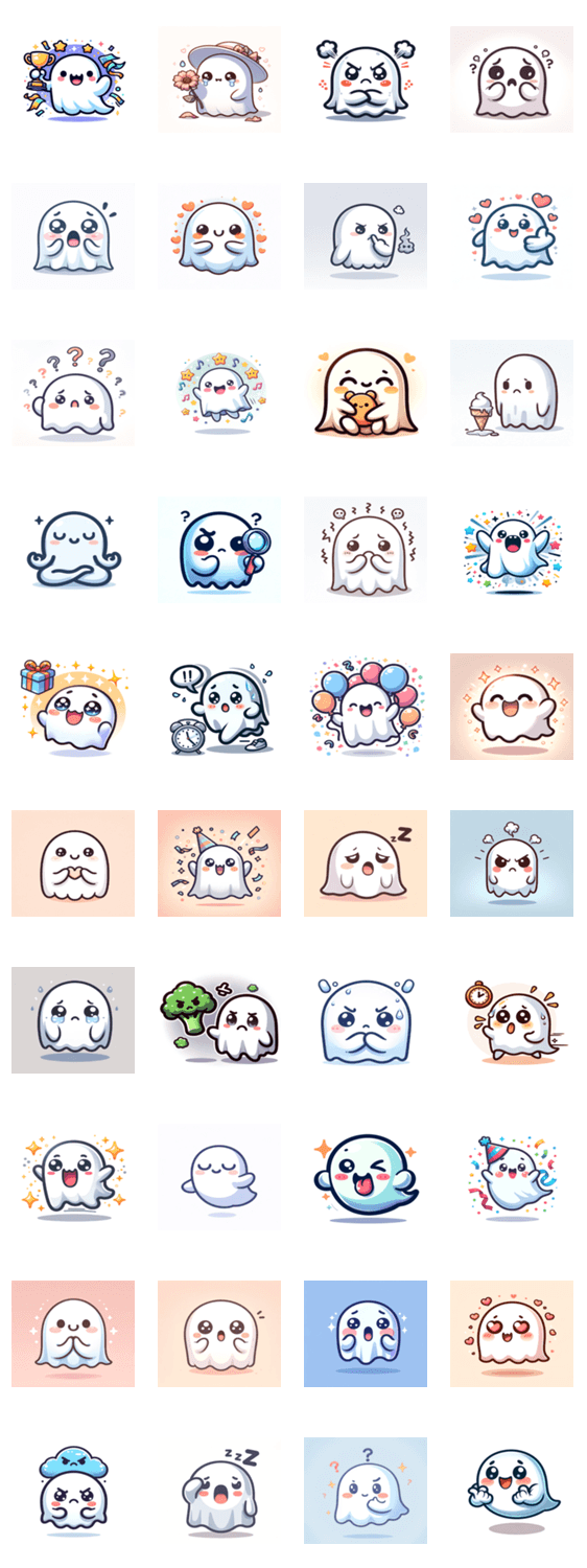可愛いおばけが日常の様々な感情を表現します。あなたのチャットをもっと楽しく、もっと表現豊かに!