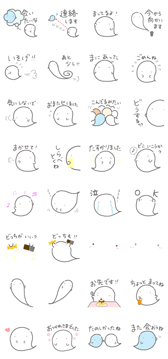 友達と会いたくなった時、使えるスタンプです。いそげ!こんでるみたい、どうする?しらべとくね、ちょっとまってね、おまたせしました、お先です、楽しかったね、など。