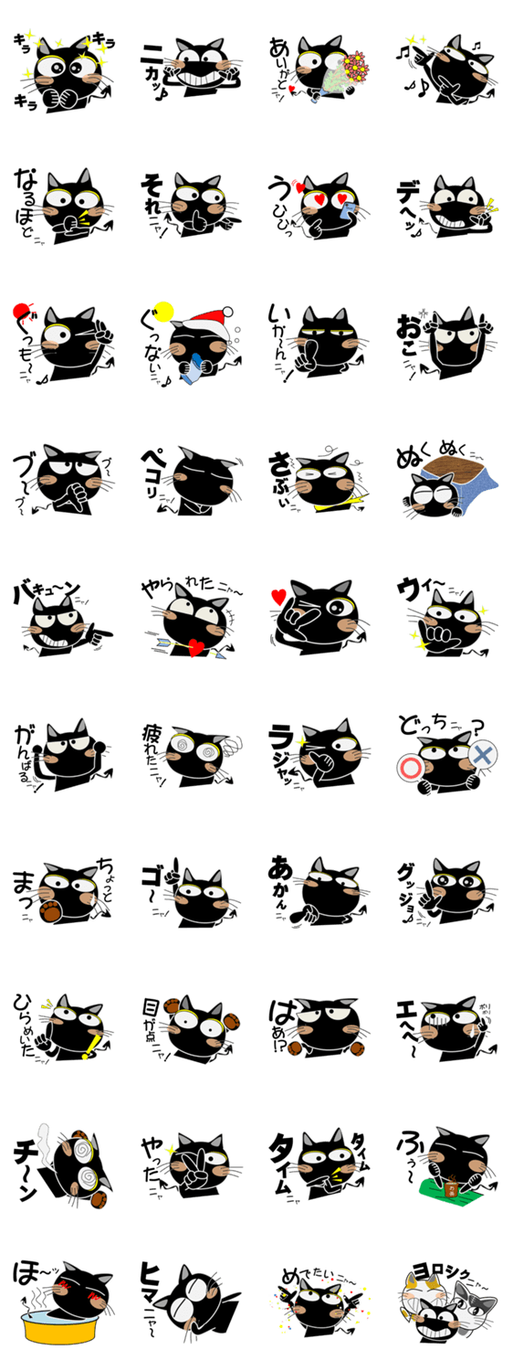 すっかり日本語をマスターした黒猫ハッピーです!日常のあるあるシーンを取り揃えました。ぜひ、友猫の「みーこ」「ツンデレリン」とセットでどうぞ!