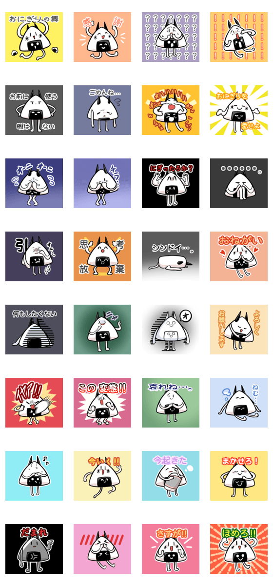 スタンプ説明 おにぎりのオニーと海苔のノリノリ