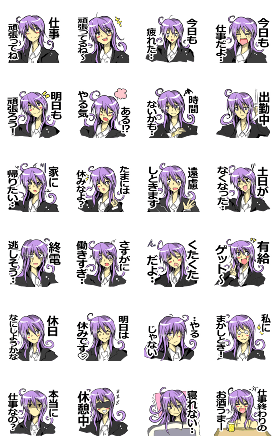 一見清楚でおしとやかなOLユウちゃんのスタンプです!仕事に関する話題などに是非ご利用ください!