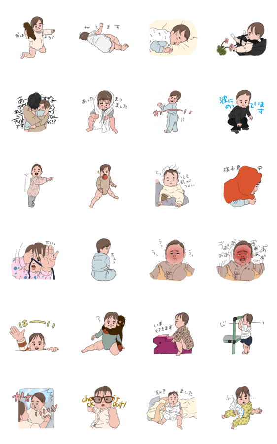 | スタンプ説明 | 0歳児(7〜11か月ごろ)の仕草をスタンプにしました。 |