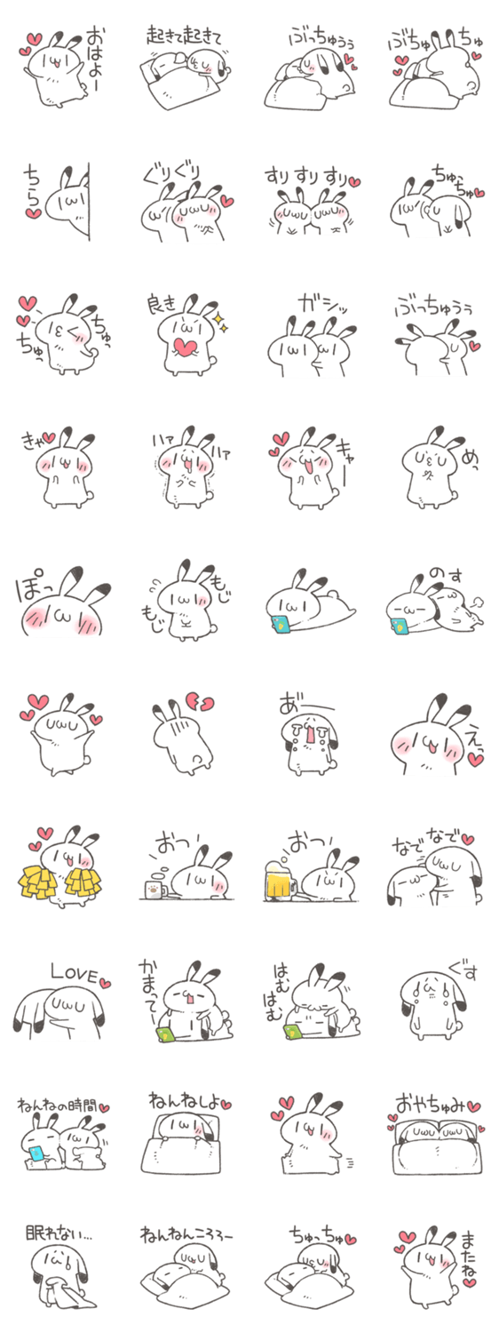 愛情いっぱいゆるうさラブちゅっちゅスタンプできました!