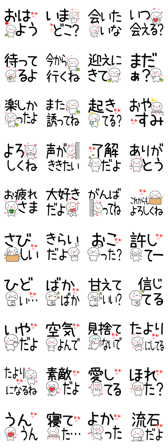 しろまるいキャラの気持ち伝えるスタンプ☆デカ文字です もるきゅた作