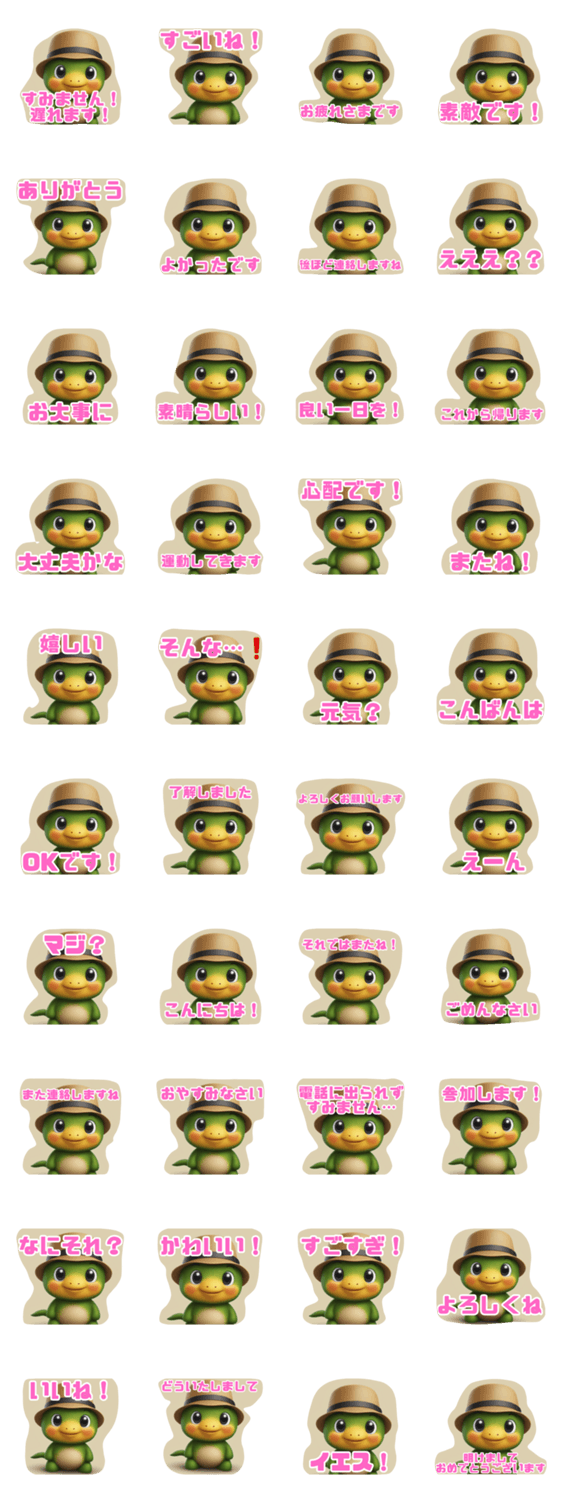 カエルのハットくんと一緒に楽しいコミュニケーションをお楽しみください。LINEスタンプメーカーでつくったスタンプです。画像はCanvaで作成しました。