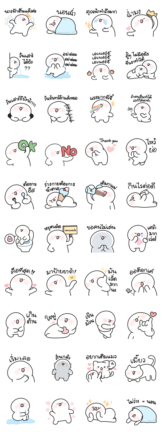 白ネコのあいうえお・・・ってるスタンプ