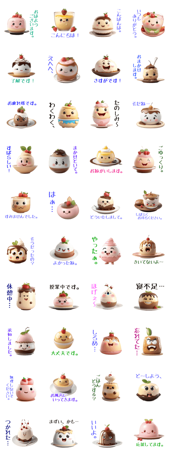 ふんわりカスタードにキャラメルやフルーツもたっぷりのプリンをモチーフにした可愛いLINEスタンプ第2弾。毎日使える日常スタンプです。コメントに可愛いプリンをそえて。