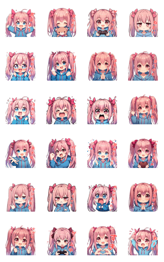 青色パーカーちゃんのスタンプです! 色々な気持ちを伝えたいとき、反応したいときにご利用ください。