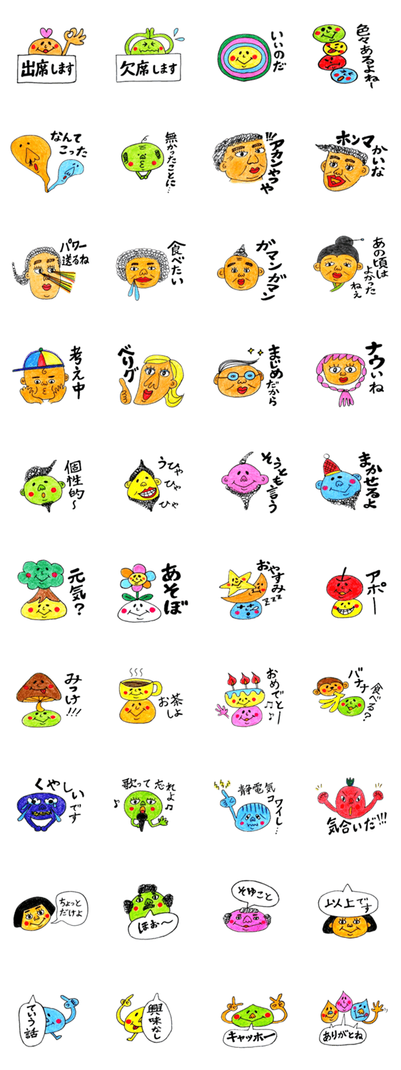 色えんぴつの手描きスタンプ第9弾!! 個性的な人々が集まりました\(^o^)/どうぞよろしくお願いします!!