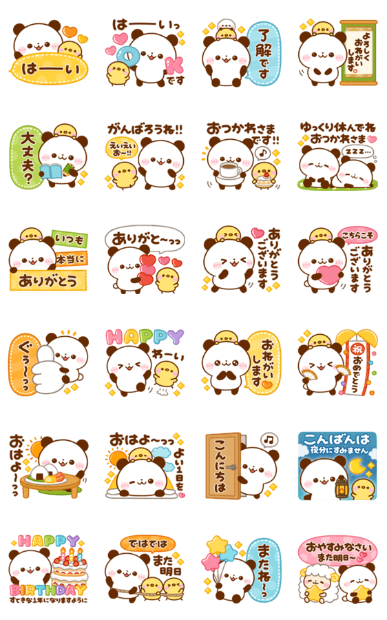 パンダ が画面いっぱいに可愛く飛び出す♡日常で毎日使えることばがいっぱいのポップアップスタンプです。
