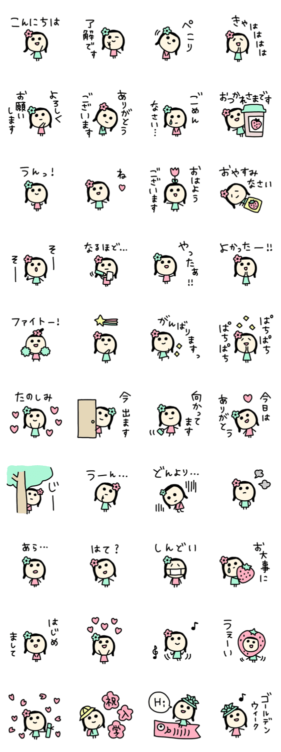 ほんわか癒しのスタンプ/女の子/ゆるい/ふんわり/女子/幸せ/日常/毎日/挨拶/文末/カラフル/シンプル/大人/友達/敬語/かわいい/イベント/春/新生活/ポップ/ピンク