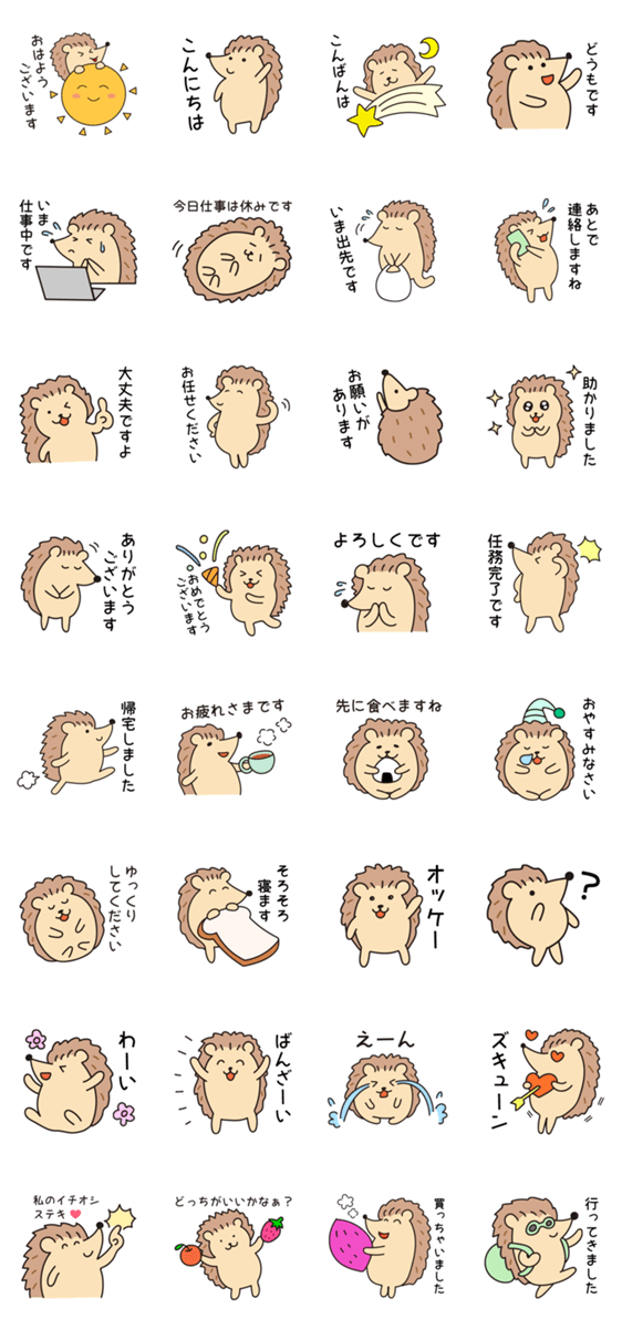 | スタンプ説明 | 日常生活で使いやすい、シンプルでゆるかわいいハリネズミのスタンプです。 |