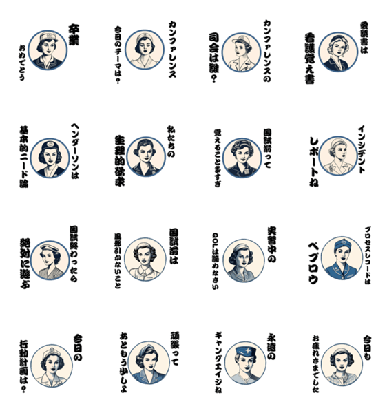 看護学生が日常会話や実習、看護師国家試験でも使用できるスタンプ。