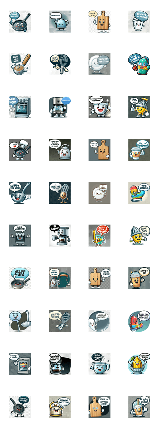 日常の料理時間を彩る愛らしいキッチン用品のキャラクターたちを集めたシリーズです。