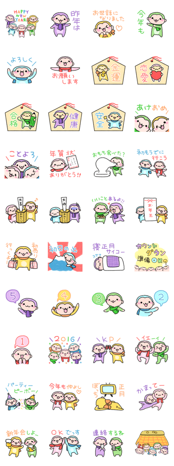 パステルおさるのお正月2016 -LINEスタンプマニア