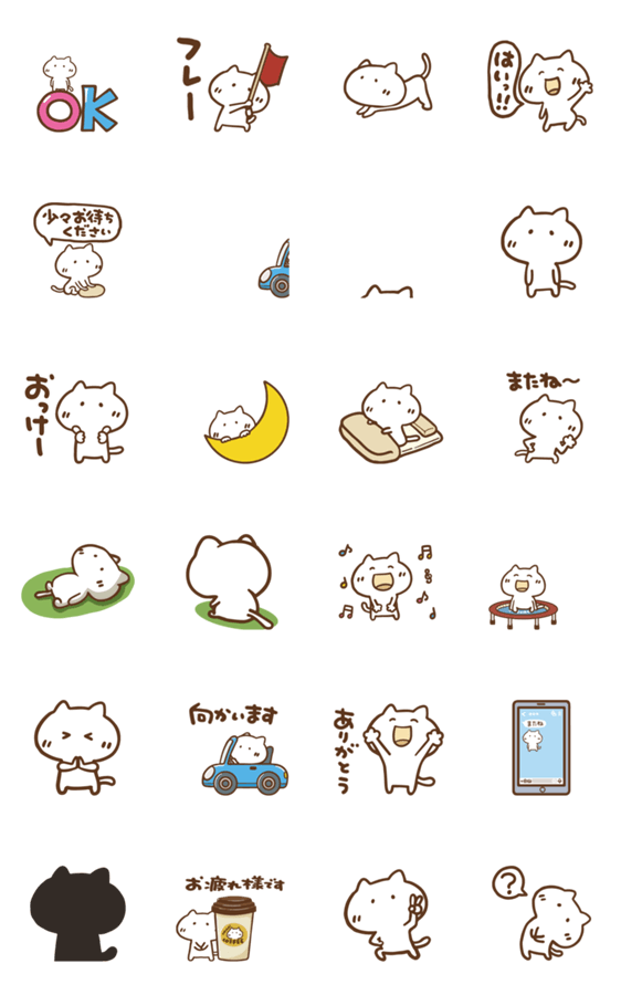 白ネコのあいうえお・・・ってるスタンプ