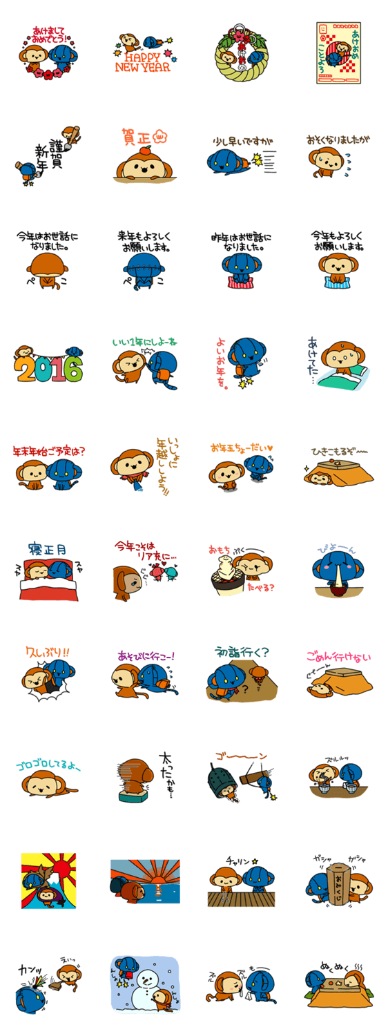 2016年の干支おさるさんのスタンプ!普通のおさるさん「おさ丸」とロボットのおさるさん「ロモッキー」の2匹が年末年始を盛り上げます!