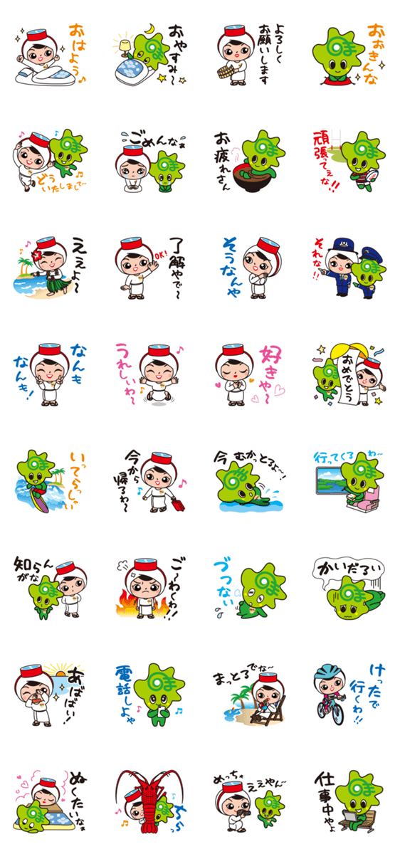 三重県志摩市の人気公式キャラクター・しまこさんとあおサ~の公式スタンプです。