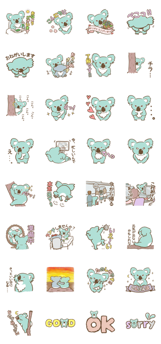 | スタンプ説明 | つぶらな瞳で見つめてくるコアラちゃんです。中国語バージョン、英語バージョンもあります♪ |