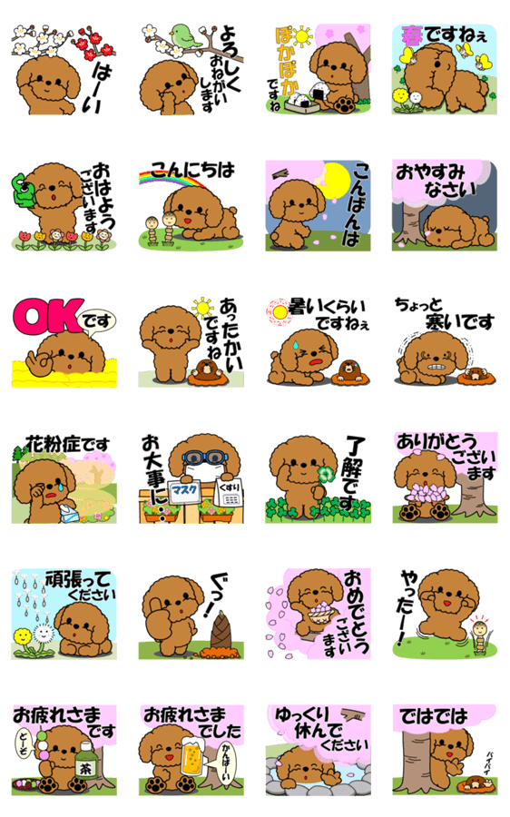 春の日常に便利に使える、トイプードルの飛び出すスタンプです。