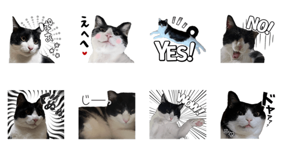 我が家のニャンズをスタンプにしました! ハチワレ柄のメルくんがメインになります。 面白い表情がたくさん!
