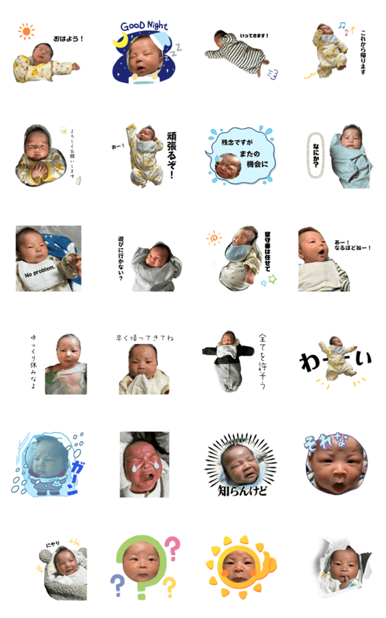 齢0歳にして何だか渋い赤ちゃんのスタンプです。
