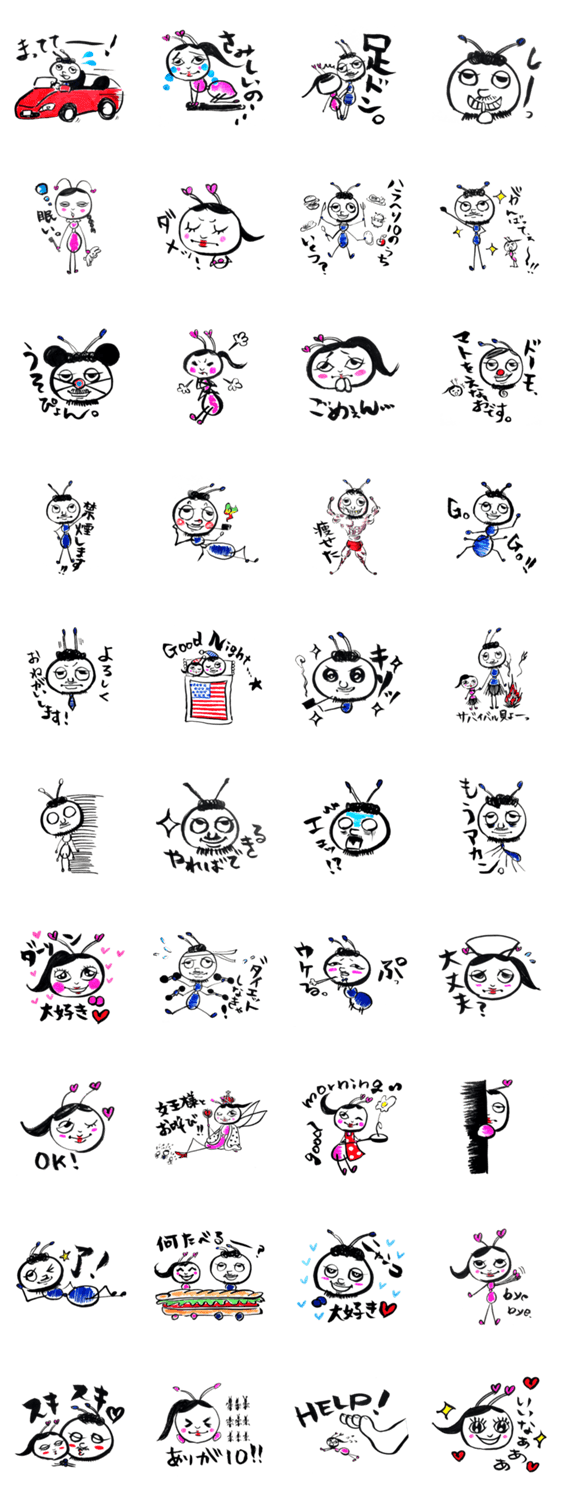 アリの世界で流行っているスタンプだぉ!!カップルで楽しく使ってねぇ!見てくれてアリがとう!