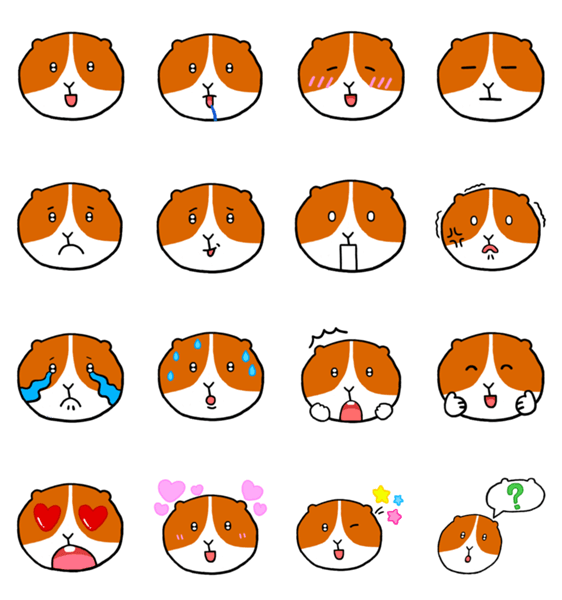 日常で感じられる感情をかわいいモルモットで面白く表現した。 テキストでは私の感情が十分に伝わるようではない時に使いやすい。