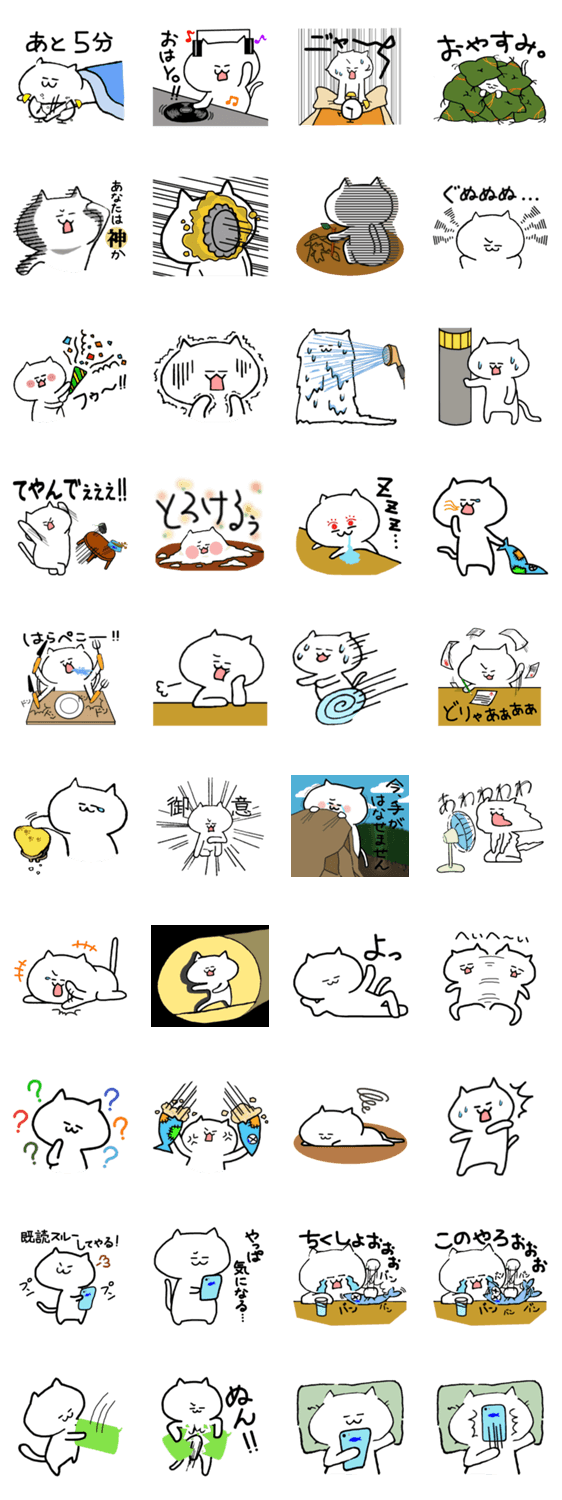 ちょっとうざい、でもどこか憎めない猫の「しらす」が、怒ったり、悔しがったり、崖にしがみついたり、パイぶつけられたり、ちゃぶ台投げたり…あなたの気持ちを表現します