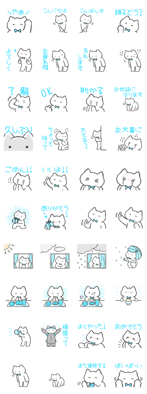 白ネコのあいうえお・・・ってるスタンプ