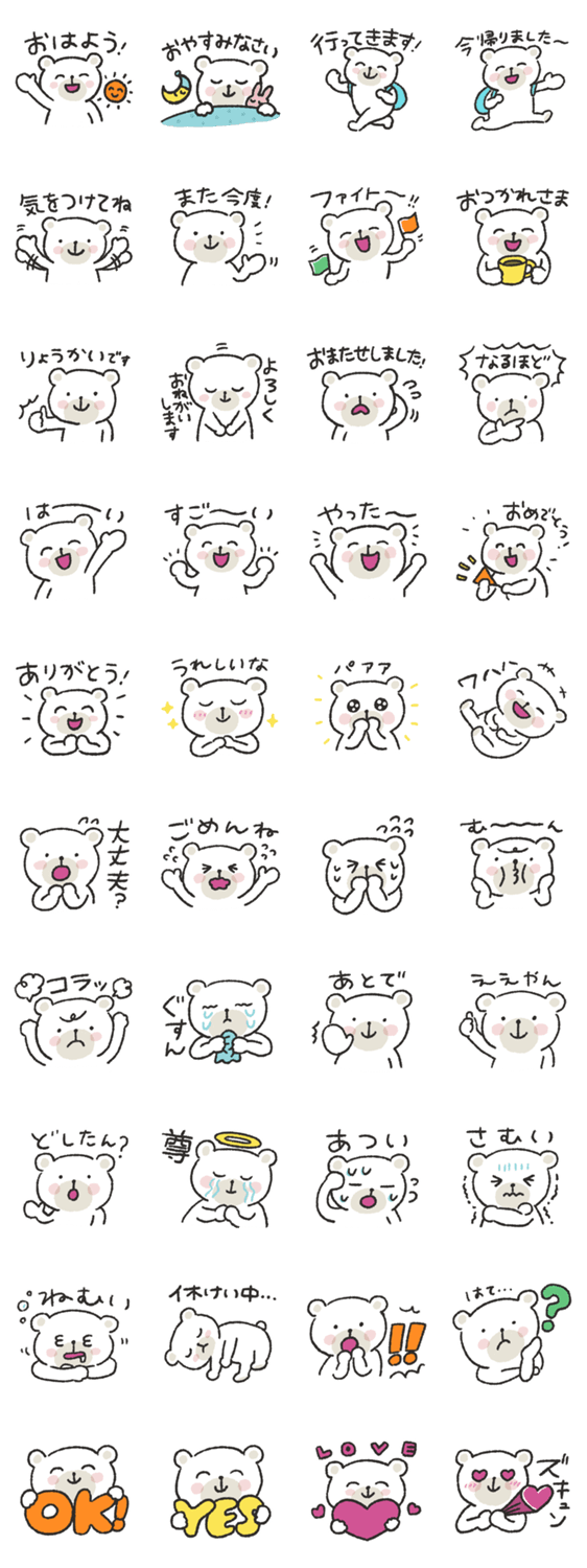 とっても使いやすい日常会話のスタンプ。ほんわかしたくまが毎日の挨拶や何気ない会話をゆるくかわいくお伝えします。