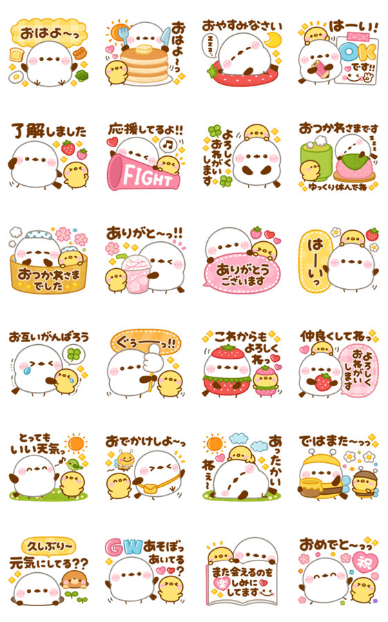 あったか春にぴったり♡優しく明るいカラーで画面華やぐポップアップスタンプです。シマエナガとぴよこが可愛く動きます♪