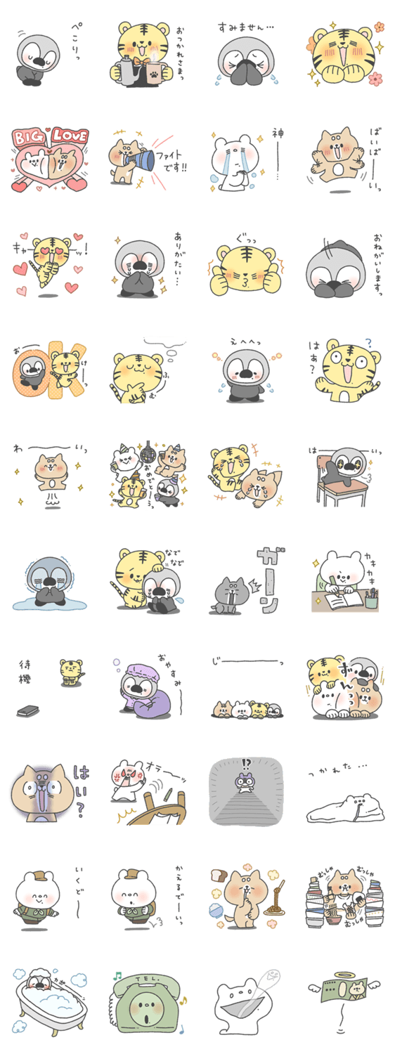 口元のホクロがチャームポイントのしろくまななみん、おしばさま、おっとらちゃん、ぺぇたんの通称「ななみんず.」が四人揃った初めてのスタンプが登場!