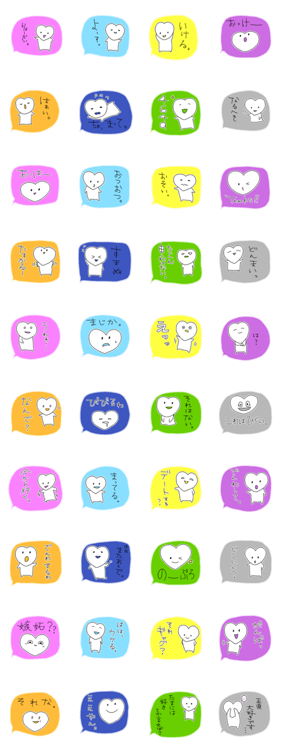 馴れ馴れしく何でも言い合える、長く続いてるカップルや大の親友友達向けのハート(体付)のスタンプです。ゆるい感じでつかってください。