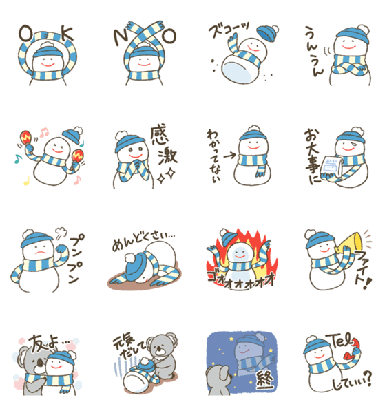まんまる真っ白、時々シュールな雪だるまのぬいぐるみ。 お友達のコアラもちらっと登場。