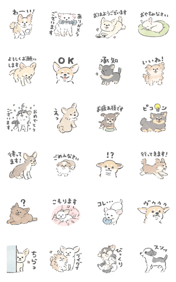 チワワがいるよ。可愛いね。 「おいぬがいるから頑張れる」シリーズ第6弾のスタンプです。