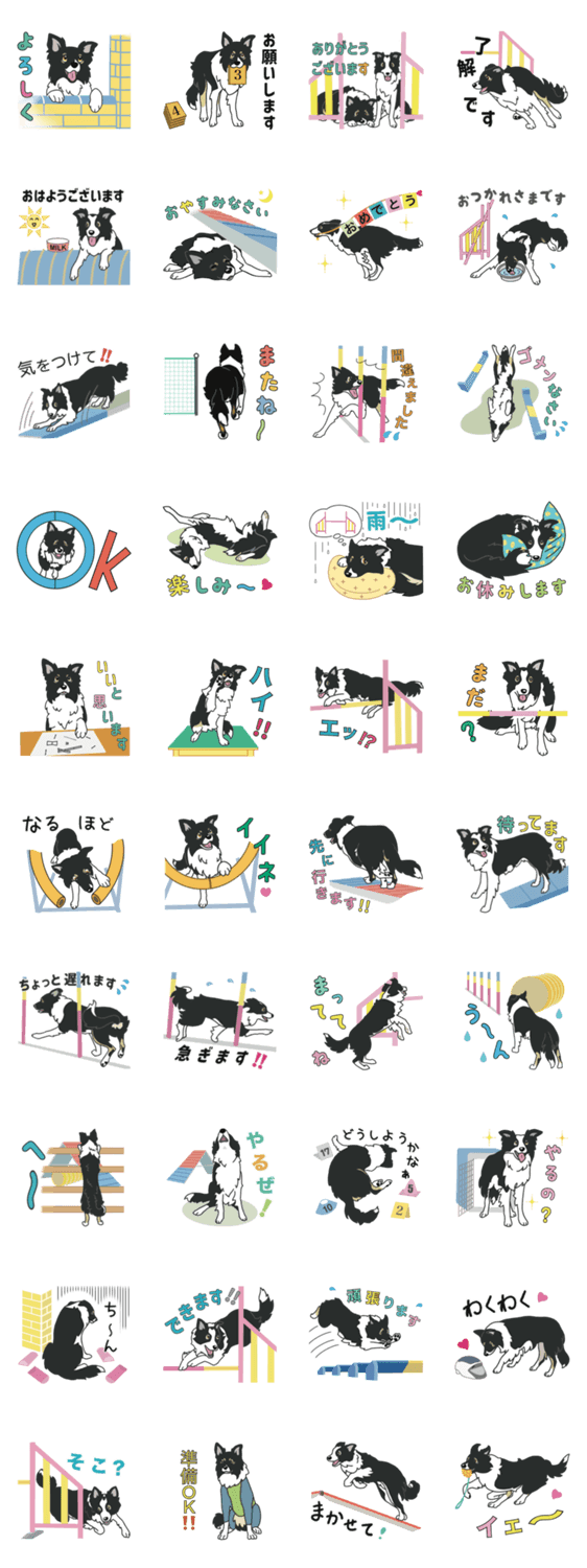 ボーダーコリーのジンとトコがあなたの日常会話をお手伝い♪アジラーのためのスタンプです。
