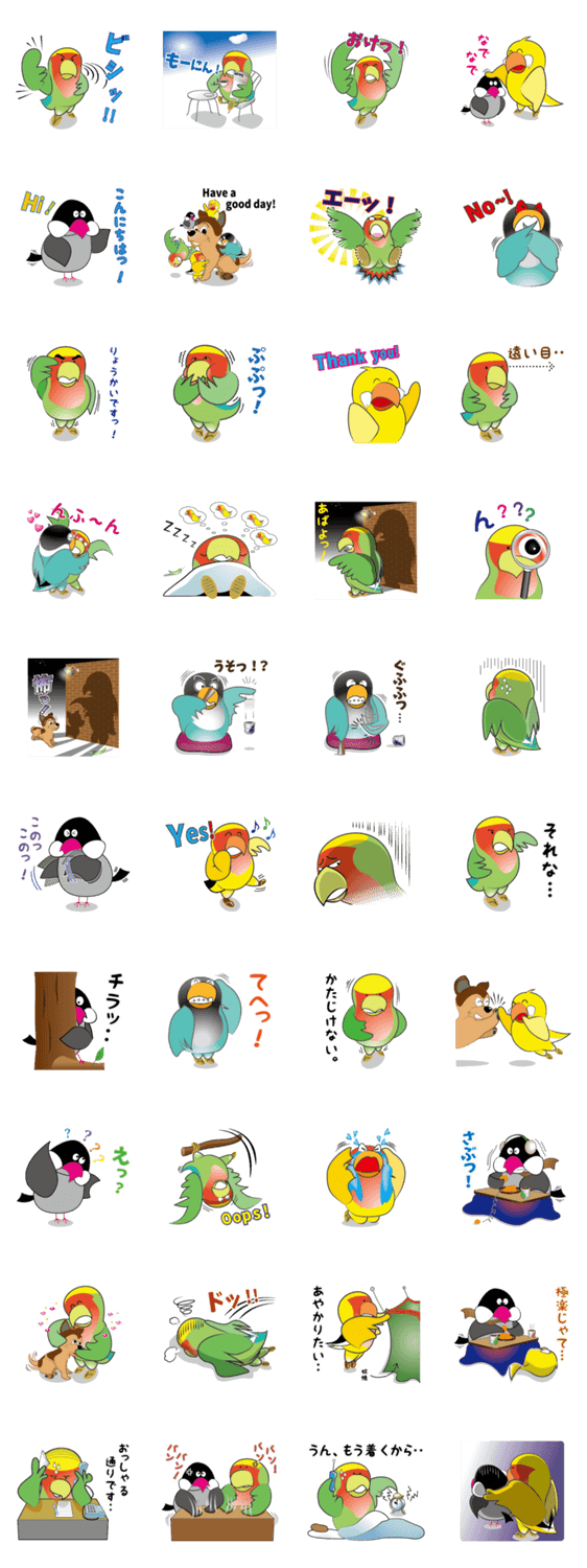 小桜インコのチャーちゃんと愉快な仲間達。ボケボケの小鳥たちを楽しんで使ってねぇ〜。