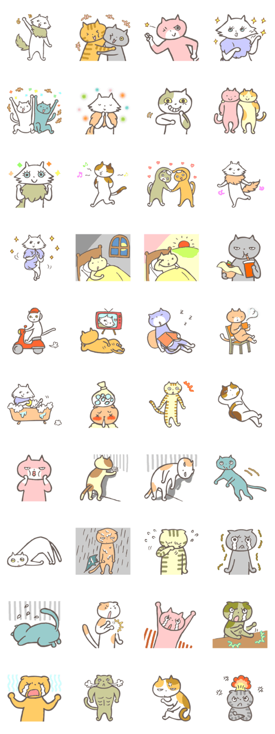 40 匹のカラフルなネコたちがあなたに代わって気持ちを伝えるスタンプの第2弾です。言いやすい事も言いにくい事も、ネコたちにおまかせ!!