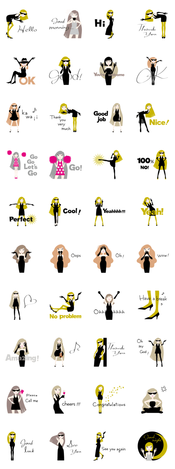 スタンプ説明 パンプスを履いた元気な女のコたち。No.6