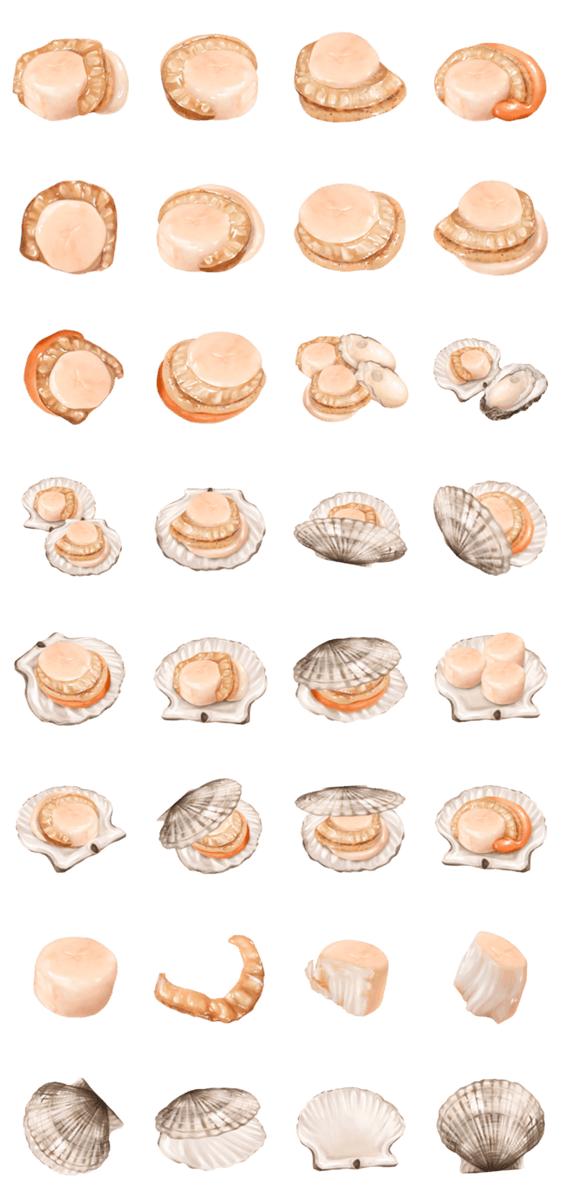 食べ物/ホタテ/ほたて/貝柱/魚/牡蠣/カキ/かき 可愛い/キュート/シンプル/面白い/シュール 白/ホワイト/茶色/ブラウン/ベージュ/オレンジ