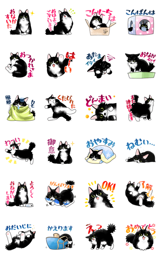 - 白ネコのあいうえお・・・ってるスタンプ