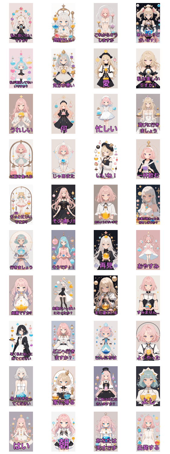 | スタンプ説明 | アニメキャラクター、甘い女の子、ガールフレンドの妻の口調用語。 ※このスタンプはトークルームで大きく表示されるBIGスタンプです。 |