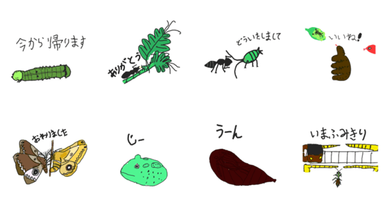 蛾やイモムシなどの昆虫や爬虫類の日常挨拶スタンプです