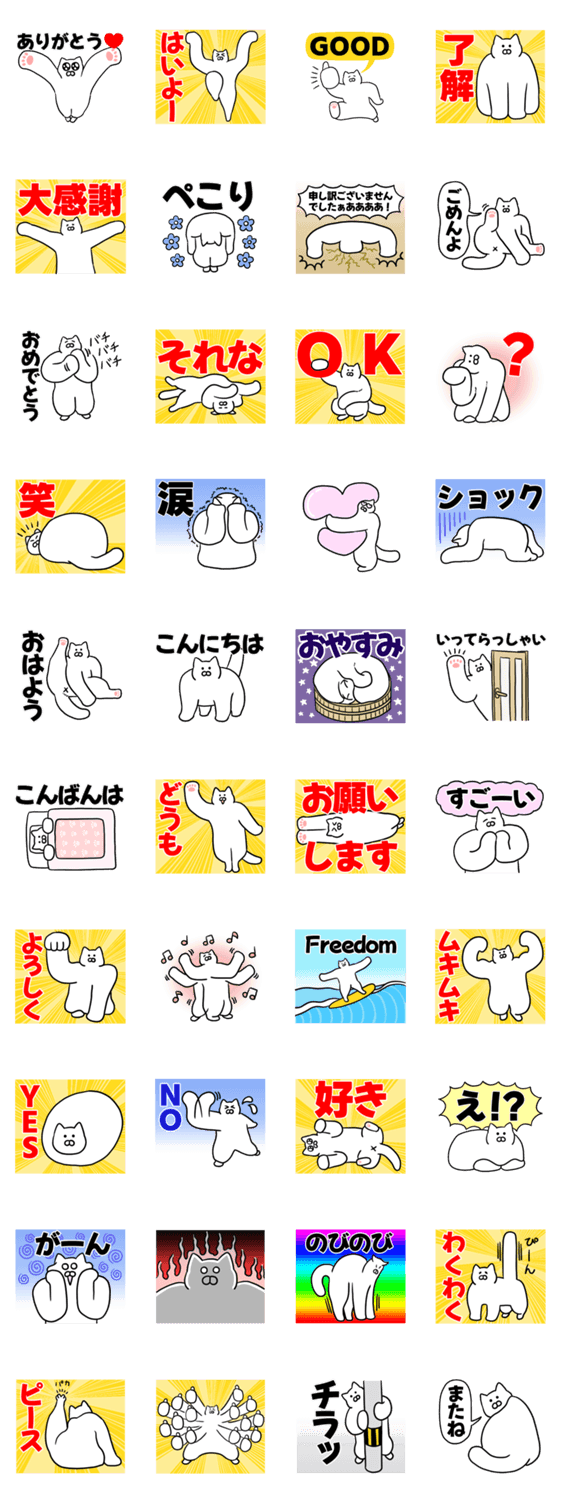大きい白猫のスタンプです。ネコ好きの方におすすめです。