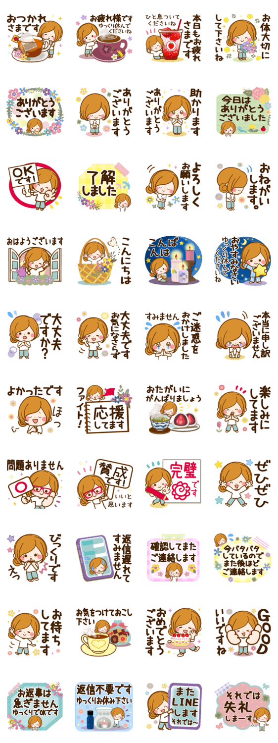 かわいすぎなくてシンプルなデザインで、毎日使う挨拶やお返事を集めた便利な敬語パックです♡家族や友達、お仕事関係やママ友、PTAの連絡のやりとりなどでも活躍します♪